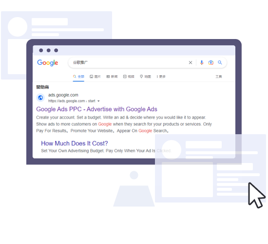 它是什么: 当潜在客户在谷歌主动搜索您的产品或服务相关的关键词时,您的广告会以文本形式出现在搜索结果页面的顶部。